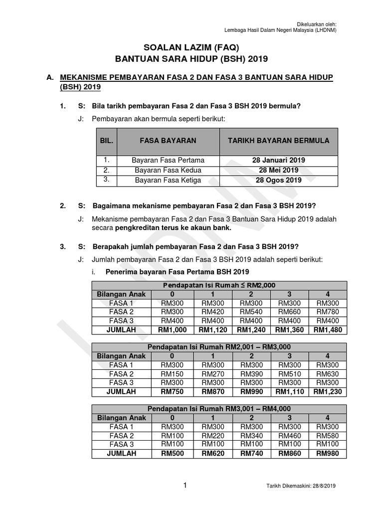 Bayaran bantuan sara hidup bsh fasa 3 akanmula dibayar mulai 28hb ogos 2019#bsh #bantuansarahidup #jabatanpenerangan #iamsabahanyoutuber. Tarikh bayaran bsh fasa 3 bermula 24 julai 2020. Bantuan sara hidup (bsh 2019) fasa ketiga bernilai rm1.23 bilion akan diagihkan bermula 28 ogos ini. Berita baik untuk anda, penerima bantuan sara hidup. Berita baik buat anda khususnya penerima bantuan rakyat 1 malaysia (br1m) atau kini dikenali sebagai bantuan sara hidup (bsh).