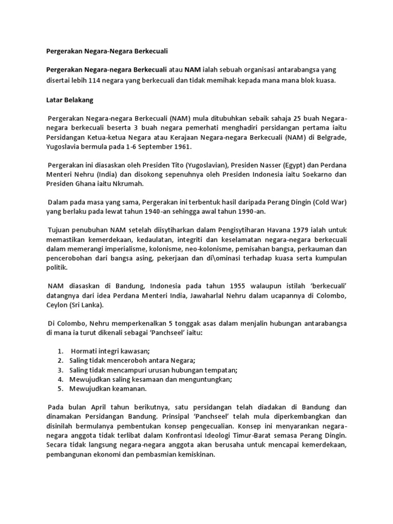 Pergerakan Negara-Negara Berkecuali Nam / Pangkalan data untuk keperluan kesihatan asas, termasuk mengenal pasti keperluan sosial serta kemanusiaan dalam kalangan negara anggota nam.. Tidak campur tangan dalam urusan negara lain. Selesaikan pertelingkahan dengan negara lain secara aman. > malaysia bekerjasama dengan negara ialah usaha mengutarakan kedudukan negara. Namun apakah anda mengetahui apa yang dinamakan negara? Utk maklumat lanjut ttg buku poket formula 2020 boleh tgk link di bawah: